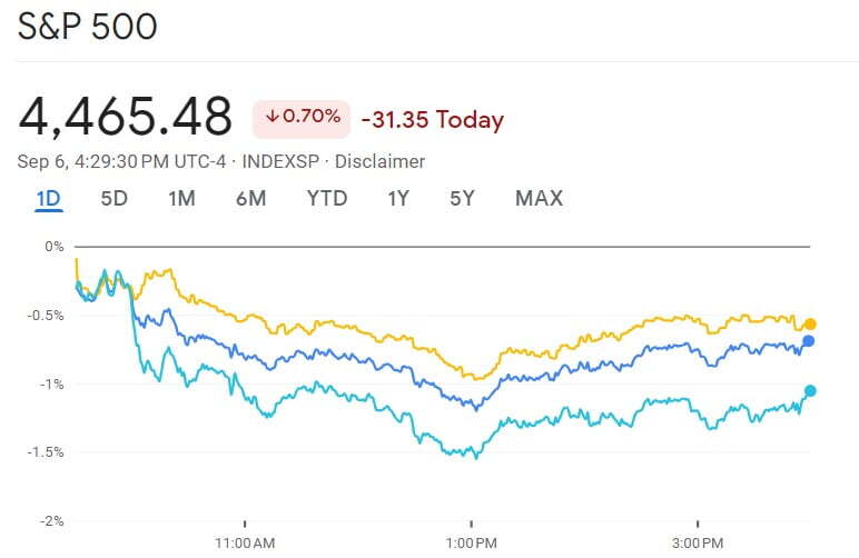 반대로 주가는 급락했습니다. 나스닥은 한때 하락 폭이 1.5%를 넘었습니다.