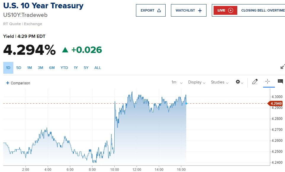 ◆미국 채권 : 국채 10년물 4.294%(2.6bp), 2년물 5.027%(6.1bp)