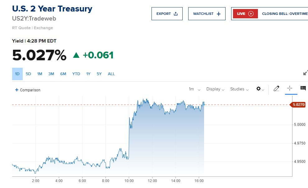 미국 경제의 대부분을 차지하는 서비스업 업황이 추가 개선되고, 인플레이션이 반등할 수 있음을 나타낸 데이터에 즉각 금리와 달러, 유가가 치솟았습니다. 2년물 금리는 5%를 훌쩍 뛰어넘었고 10년물도 4.3%를 돌파했습니다. 서부텍사스산 원유(WTI)는 배럴당 88달러를 넘었고, ICE 달러 인덱스도 105.0까지 치솟았습니다. 모하메드 엘 에리언 알리안츠 고문은 "ISM 수치는 서비스업이 계속해서 성장과 인플레이션을 몰고 가고 있음을 보여준다"라고 설명했습니다.