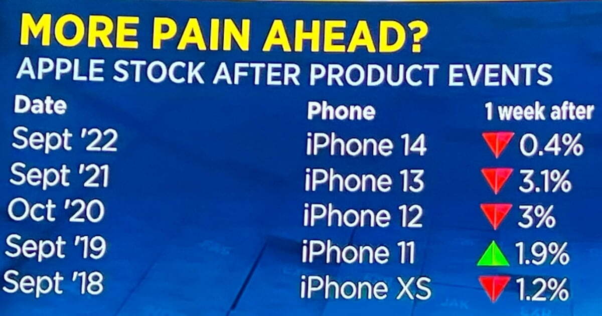 하지만 애플은 과거 아이폰 신제품 발표를 앞두고 주가가 올랐지만, 발표 이후에는 하락한 적이 많았습니다. 지난 5년간을 따지면 발표 직후 1주일간 상승한 때가 2019년 한 번뿐입니다. 그래서 월가는 조심스럽습니다.