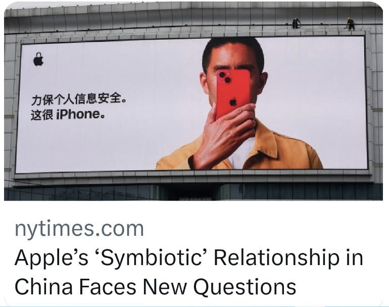 전반적으로는 우려는 크지만 그런 걱정이 현실화할 것이란 예상은 강하진 않습니다. 애플에 중국은 엄청난 시장이기도 하지만, 아이폰의 핵심 생산기지입니다. 중국은 경제 부진을 타개하려고 해외 자본 유치에 발 벗고 나선 상황인데, '애플 죽이기'는 도움이 되지 않을 겁니다. 그건 그렇지 않아도 높은 실업률을 더 높이는 요인이 될 것이고요.