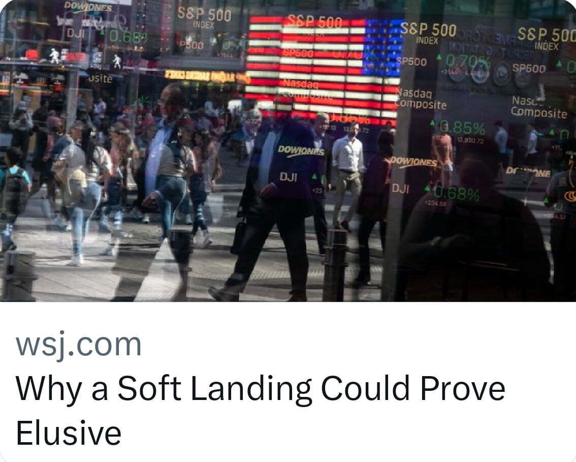 그런데 지난 주말 'Fed의 비공식 대변인' 닉 티미라오스 기자가 약간 부정적 뉘앙스의 기사를 썼습니다. '왜 연착륙은 달성하기 어려운가'(Why a Soft Landing Could Prove Elusive)라는 제목이었죠. 티미라오스는 "거의 모든 경착륙(경기침체)은 처음에는 연착륙처럼 보인다"라며 1990년, 2001년, 2007년에도 경기침체 직전에 월가 이코노미스트들은 연착륙을 예상했었다고 썼습니다. 올해도 인플레이션 둔화와 노동시장 냉각으로 낙관론이 일고 있다고 덧붙였고요. 그러나 이런 연착륙은 드물고, 현재 연착륙을 방해할 수 있는 요인으로 ▲너무 오랫동안 너무 높은 금리를 유지하려는 Fed(처음 인플레이션을 오판했던 실수로 인해 너무 빨리 금리를 내릴까 봐 걱정하고 있다) ▲너무 뜨거운 경제(계속되는 정부 부양책으로 인한 소비 지속) ▲유가 상승(1990년, 2008년 Fed가 금리를 내릴 때 유가 급등은 연착륙을 방해한 요인이었다) ▲금융시장 붕괴(너무 높은 금리로 인한 금융사고 가능성) 등 네 가지가 있다고 주장했습니다.