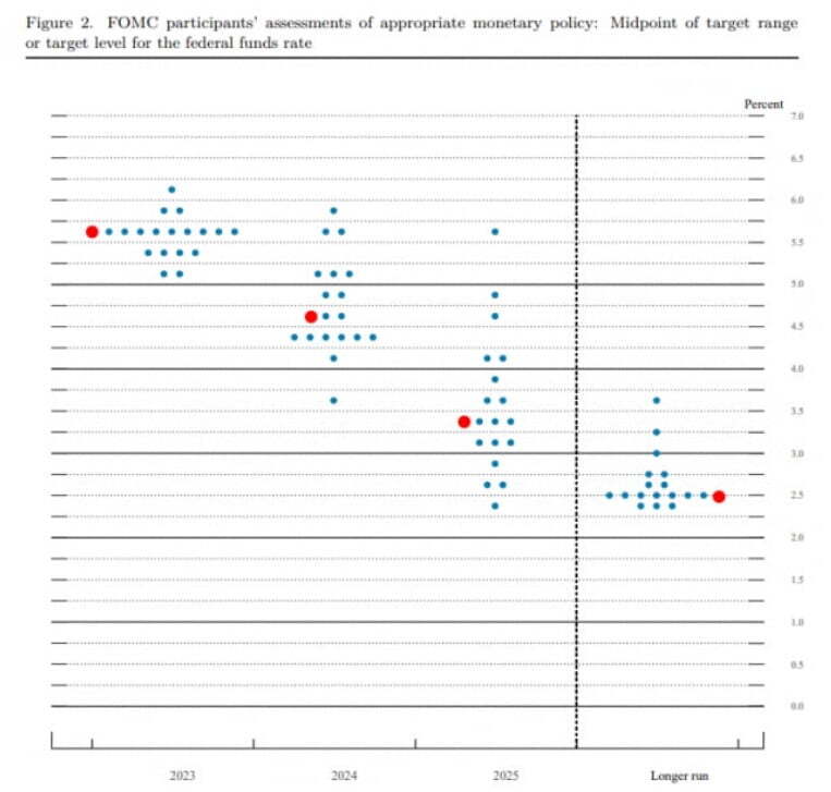 ▶골드만삭스는 "Fed가 단지 정책적 유연성을 유지하기 위해 점도표에서 10대 9의 좁은 다수로 여전히 한 번의 금리 인상(25bp)을 계속 가리킬 것으로 예상한다"라고 밝혔습니다. 점도표 상의 기준금리 중앙값은 2023년 5.625%, 2024년 4.625%로 변화가 없을 것이란 것이죠. 장기 중립 금리는 기존 2.5%에서 2.75%로 높일 것으로 봤습니다. 경제전망(SEP)에서 2023년 GDP 성장률 전망치(기존 1%→2.1%), 실업률(4.1%→3.9%) 근원 PCE 인플레이션(3.9%→3.5%)을 모두 조정할 것으로 전망했습니다. 골드만은 그러나 "점도표에서 올해 한 번 더 추가 인상을 전망한다 해도 Fed의 금리 인상은 끝났다. 노동시장의 추가적 재균형, 인플레이션에 대한 더 좋은 소식, 그리고 4분기 성장에 대한 일시적 위험(pothole)이 11월 회의 전에 더 많은 FOMC 위원들이 최종 인상을 포기하도록 확신시킬 것으로 생각한다"라고 주장했습니다.