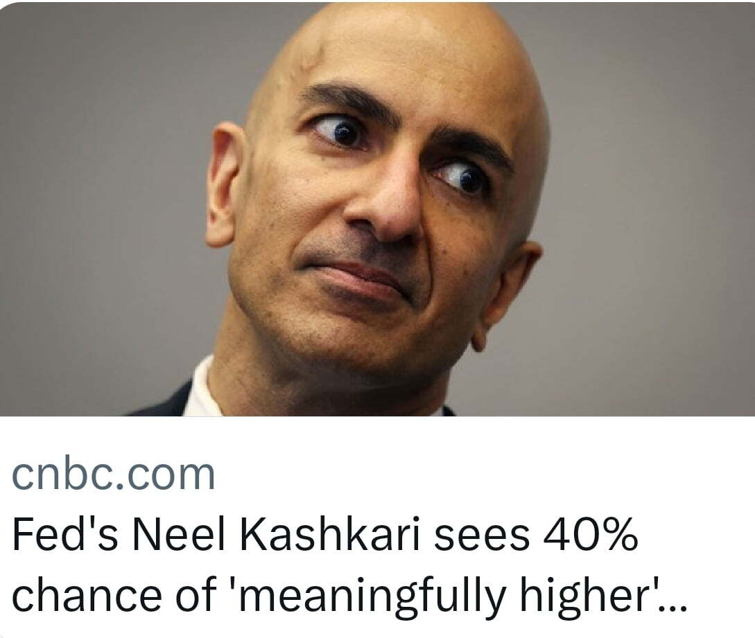 미니애폴리스 연방은행의 닐 캐시캐리 총재도 어제 저녁 행사에서 "경제가 우리 예상보다 훨씬 더 강하다면 금리는 조금 더 올라야 할 것이고 더 오랫동안 더 높은 수준을 유지해야 할 것"이라고 말했습니다. 그는 자신이 가진 두 가지 시나리오를 제시했습니다.