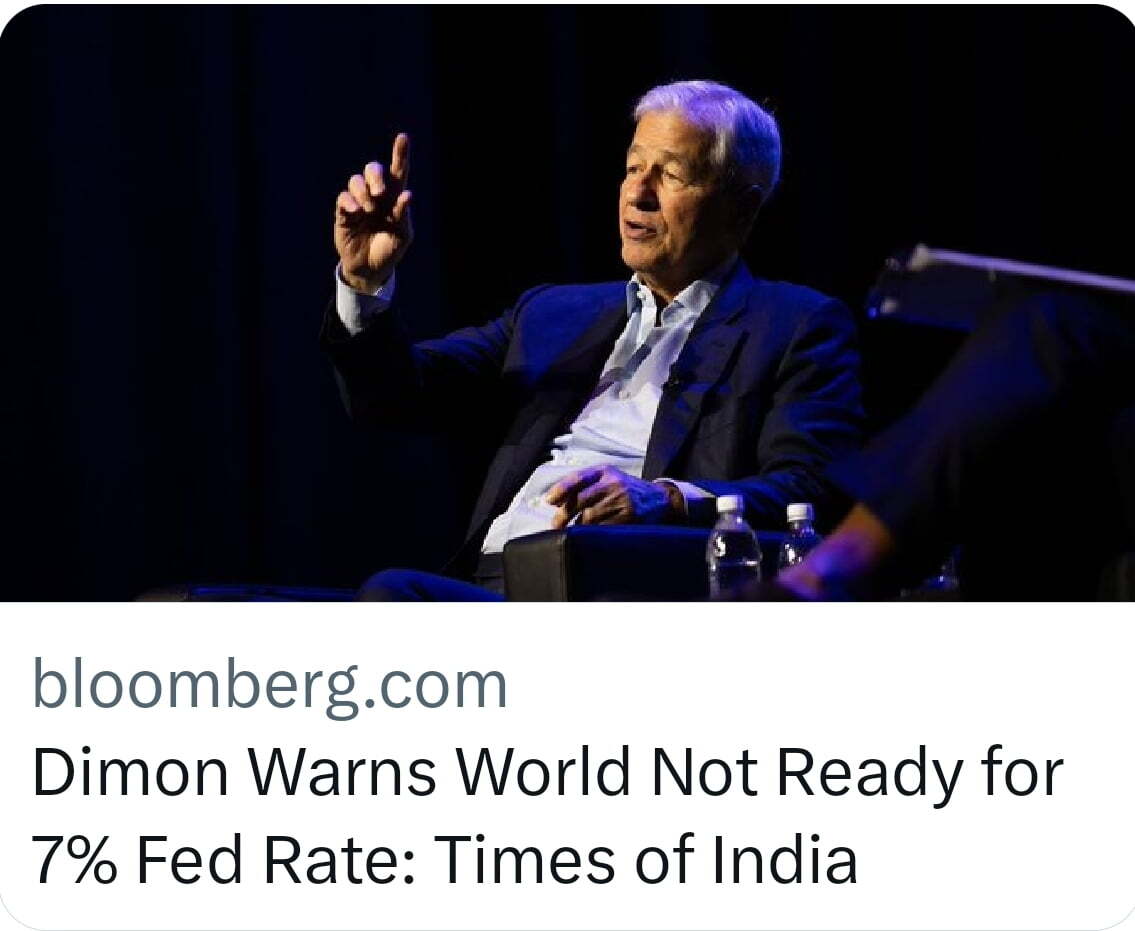 26일(미 동부시간) 새벽부터 JP모건의 제이미 다이먼 최고경영자(CEO)의 암울한 발언이 뉴스 헤드라인을 장식했습니다. 그는 인도 뭄바이에서 타임스오브인디아와 인터뷰를 갖고 "스태그플레이션과 함께 미 중앙은행(Fed)의 기준금리가 7%에 도달하는 최악의 시나리오에 대해 세계가 준비되지 않았을 수 있다"라고 말했습니다. 또 "금리가 3%에서 5%로 가는 것보다 5%에서 7%로 가는 게 경제에 더 큰 고통이 될 것"이라고 덧붙였습니다. 그는 국채 금리가 추가 상승 여지가 있다고 밝혔습니다. 다이먼은 "미국의 재정 적자는 영원히 지속할 수 없다. 시간이 지남에 따라 모든 심각한 문제를 처리해야 하며, 그래서 금리가 더 오를 수도 있다. 하지만 연착륙이 있기를 바라고 기도한다"라고 설명했습니다. 연착륙을 기도한다고 했지만 사실상 투자자들이 희망하는 연착륙/골디락스 시나리오에 강한 의문을 제기한 것이죠.