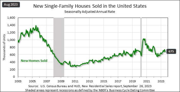 8월 신규주택 판매는 전월 대비 8.7% 감소한 연율 67만5000채를 기록했습니다. 7월(73만9000채)이나 월가 예상(69만5000채)을 밑도는 것입니다.