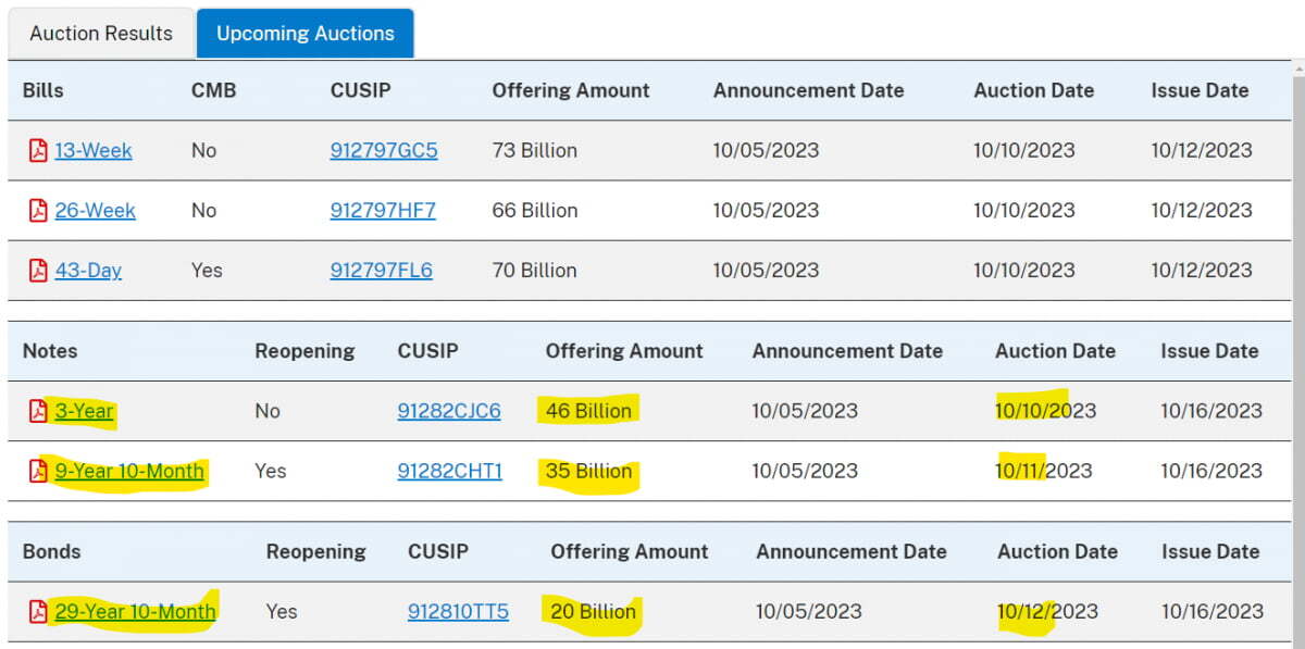 당장 다음주 미 재무부는 국채를 쏟아냅니다. 초단기부터 30년물까지 모두 5340억 달러어치를 발행하며, 순 발행액은 850억 달러입니다. 순 발행액 중 610억 달러는 3년, 10년, 30년물입니다.