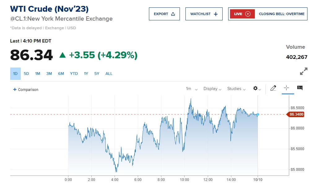 월가가 가장 주시한 것은 유가입니다. 유가는 이른바 이스라엘-하마스 분쟁이 얼마나 시장에 영향을 미칠지 가늠하는 지표이기 때문입니다.