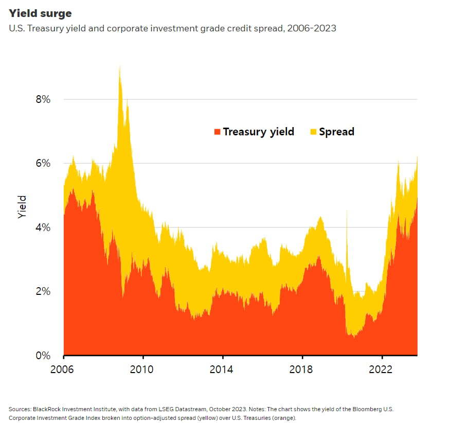 ▶블랙록은 2020년 말부터 높은 인플레이션, 국채 발행 증가를 이유로 장기 국채에 대한 '비중 축소'를 유지해왔습니다. 그리고 미 국채 10년물 금리가 장기적으로 5% 이상에 도달할 수 있다고 예상합니다. 그런데 오늘 미 국채에 대한 투자의견을 '비중 축소'에서 '전략적 중립'으로 높였습니다. 너무 많이 빨리 금리가 올라갔기 때문에 지금부터는 상방 위험과 하방 위험이 같아졌다는 것이죠. 블랙록은 "기간 프리미엄이 다시 더 오를 여지가 많음에도 불구하고 금리 재조정이 이미 많이 이루어졌다"라고 설명했습니다.