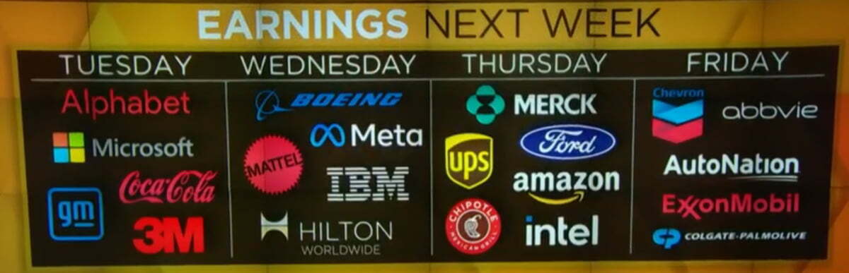 이번 어닝시즌은 이번주 빅테크로 인해 좌우될 것입니다. 화요일에는 마이크로소프트와 알파벳. 수요일에는 메타, 목요일에는 아마존이 실적을 발표할 예정입니다.