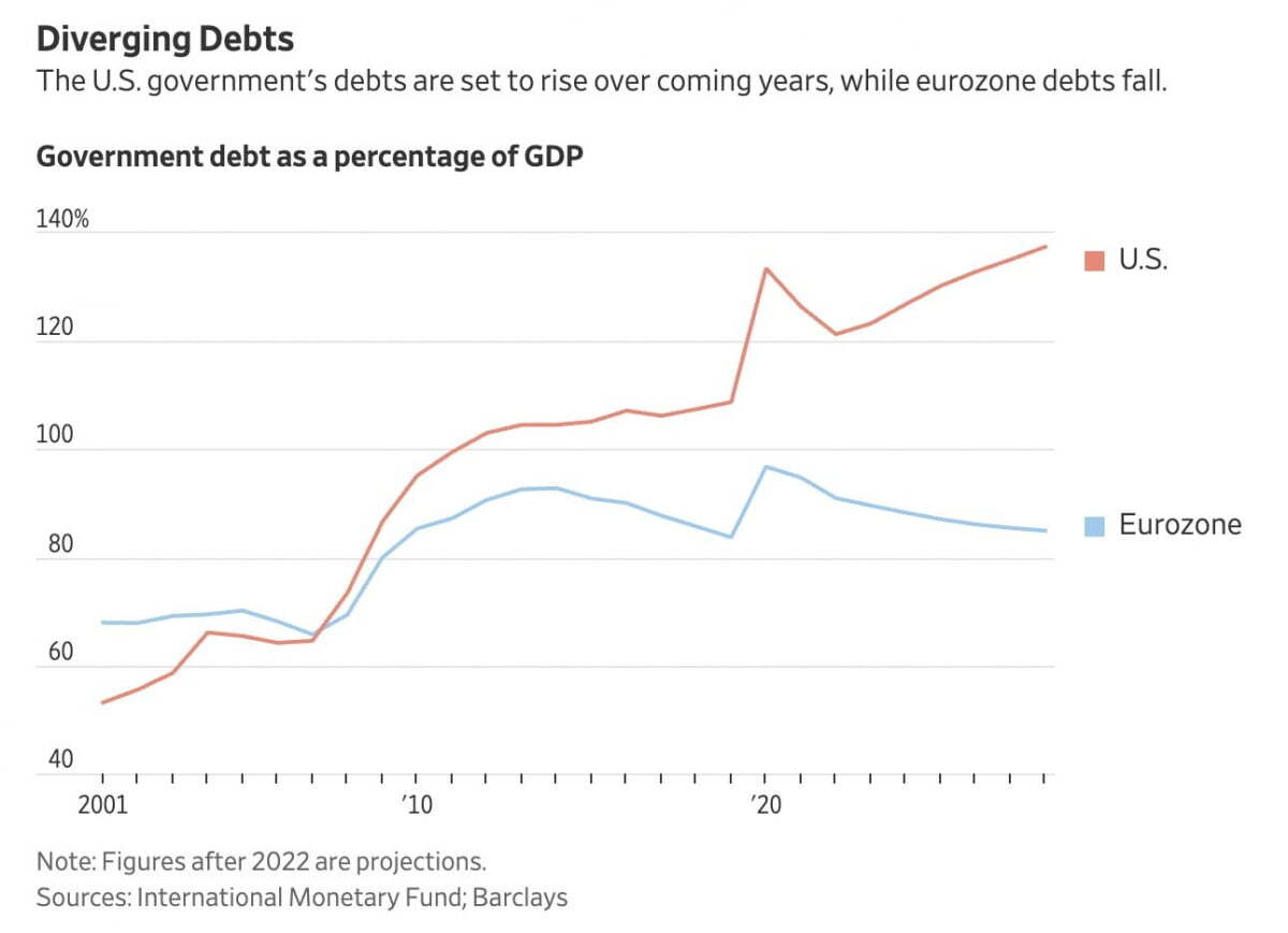 첫째, 지난 금요일 저녁 미 연방정부는 지난 9월 30일로 끝난 2023년 회계연도의 적자가 1조 7000억 달러에 달했다고 발표했습니다. 이는 직전 연도의 1조 4000억 달러보다 많이 증가한 것입니다. 특히 대법원 결정으로 학자금 대출 탕감이 취소되지 않았다면 2조 달러에 달했을 것입니다. 이와 관련, 베어트랩 리포트의 로렌스 맥도널드 설립자는 "10년물 수익률이 미국이 5%인데, 그리스는 오늘 4.36%"라고 지적했습니다. 한때 유럽부채위기의 주범이던 그리스보다 미국의 국채 금리가 더 높은 것이죠. 그건 그럴 수밖에 없습니다. 미국의 재정 적자는 2022년 국내총생산(GDP)의 5.4%에서 2023년 6.3%로 치솟았지만, 그리스의 적자는 지난해 GDP의 2.3%에서 1.6%로 감소할 것으로 예상되고 있습니다.