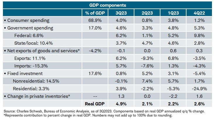 SMBC의 조셉 라노냐 수석 이코노미스트는 "매우 좋은 GDP 수치지만 보이는 것만큼 강하지는 않다. 국내 최종 판매는 3.5% 늘어나는 데 그쳤고 비주거 투자는 0.1% 감소했다"라면서 "긴축된 금융여건과 신용경색으로 인해 소비자 중심의 경제는 둔화 추세를 보이고 있다"라고 평가했습니다. 찰스 슈왑의 캐시 존스 채권 전략가도 "민간 재고와 비주거용 투자를 보면 약간의 둔화가 나타나고 있다"라고 진단했습니다.