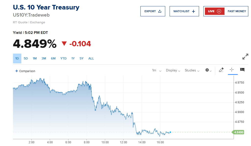 ◆미국 채권 : 국채 10년물 4.849%(-10.8bp), 2년물 5.039%(-8.2bp)