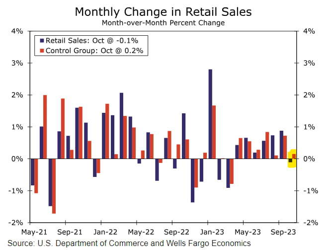 웰스파고는 "소비 지출은 약간 모멘텀을 잃을 수 있지만, 널리 예상되었던 만큼은 아니다. 자동차 및 기타 변동성이 큰 항목을 제외한 '통제 그룹'의 소매판매는 0.2% 증가했다"라고 분석했습니다.