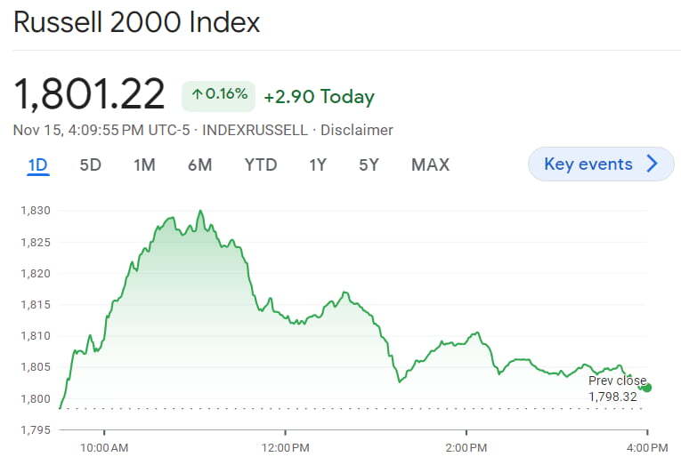 유명 투자자 마크 미네르비니는 X(트위터)를 통해 "러셀2000 지수가 어제 5.44% 오르면서 1년여 만에 가장 강했다. 시장의 폭이 넓어진다는 것은 매입 가능 주식의 확대 및 확산 가능성이 있음을 의미한다. 지난 몇 주 동안 우리는 엄선된 주식을 추가해 왔다. 어제 전체 시장의 갭 상승으로 지수가 확장되고 과매수 되고 있다. 장기적으로 이는 긍정적이다. 하지만 단기적으로는 이런 상승세를 소화하는 기간을 거쳐야 할 수 있다"라고 말했습니다. 오늘 오전 장만해도 소형주 중심의 러셀2000 지수는 한때 1.7% 넘게 치솟으면서 이틀째 비상했습니다. 하지만 오전 11시가 넘자 정상화(?)됐습니다. 러셀2000 지수는 0.16% 오르는 데 그쳤습니다.