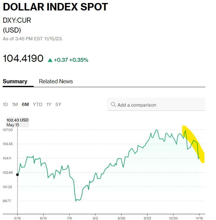 어제 달러는 1.5% 이상 급락했었습니다. 오늘은 0.35% 회복했는데요. 월가에서는 달러의 향방에 대한 논의도 금리, 주가 만큼이나 분분합니다. 그동안 미국 달러가 예상보다 강한 강세를 이어오다가 지난 10월 말부터 조금씩 하락하더니 어제 큰 폭으로 떨어진 탓이죠.