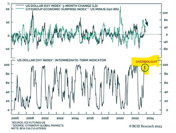 BCA리서치는 "예상보다 약한 미국 CPI 발표로 인해 투자자들이 내년 기준금리 인하 기대를 높이면서 달러화 가치가 2개월 반 내 최저치까지 떨어졌다. 달러가 지난 3~6개월 동안 과매수 된 상태에 있고 지난 10월 3일 단기 정점을 찍은 이후 하락 추세가 가속하고 있는 만큼 단기적으로 몇 달 동안 조정을 보일 수 있다"라고 봤습니다. BCA리서치는 하지만 "경제 사이클 측면에서 보면 거시경제적 맥락이 환율에 지배적 동인이 될 것"이라며 "우리는 2024년 미국에서 경기 침체가 발생할 것으로 보고 있으며, 이는 향후 6~12개월 동안 달러에 순풍을 제공할 것"이라고 주장했습니다. 즉 달러는 향후 몇 달 동안 기술적 조정을 겪을 수 있지만, 내년에 불황이 시작되면 다시 강세를 보일 가능성이 크다는 것입니다.