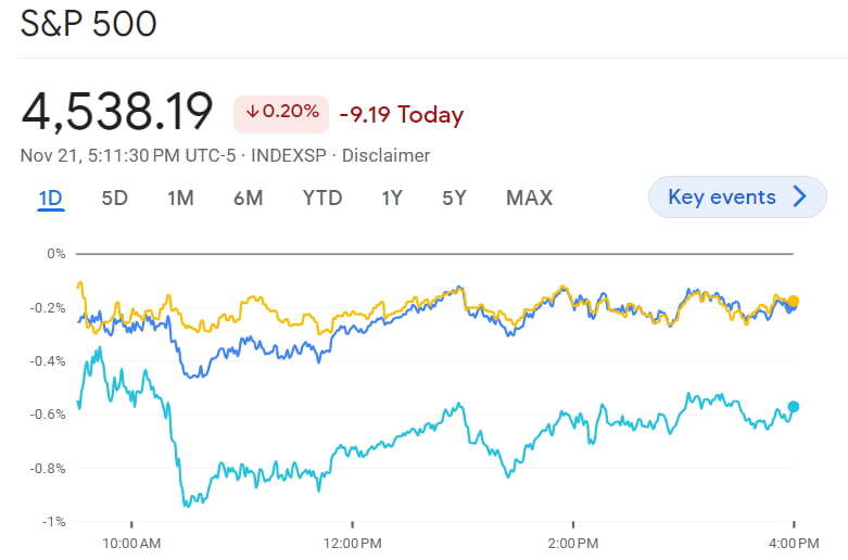 뉴욕 증시의 주요 지수는 0.1~0.5% 하락세로 거래를 시작했습니다. 그리고 종일 그 수준을 맴돌았습니다.