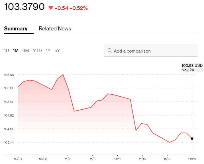 24일(미 동부시간)은 블랙프라이데이였습니다. 중요한 경제 데이터 발표나 이벤트는 없었습니다. 미 중앙은행(Fed) 위원들도 추수감사절 연휴를 즐기느라 입을 다물었습니다.