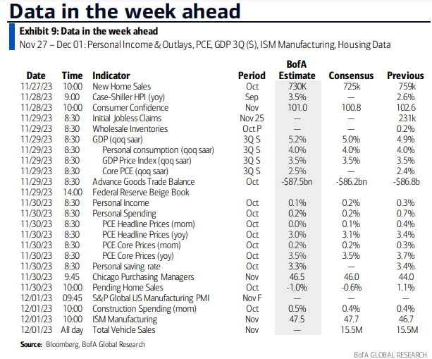 또 10월 신규주택 판매(27일), 미 공급관리협회(ISM)의 제조업 PMI(12월 1일)도 나옵니다. 3분기 국내총생산(GDP) 증가율에 대한 두 번째 추정치(잠정치)도 29일 발표됩니다. 첫 번째 속보치는 4.9%인데, 월가는 5.0%로 높아질 수 있다고 추정합니다.