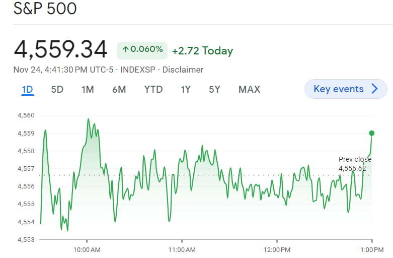 뉴욕 증시는 별 방향성을 보이지 않았습니다. 종일 보합 선을 오르내리다가 결국 다우는 0.33% 오르고 S&P500 지수는 0.06% 상승했지만, 나스닥은 0.11% 내린 채 거래를 마쳤습니다. 오늘은 추수감사절 다음날로 시장은 오후 1시에 폐장했습니다. 거래량도 적은 편이었습니다. 2023년 일일 평균 거래량 106억 주의 절반 수준인 49억 주가 거래됐습니다.