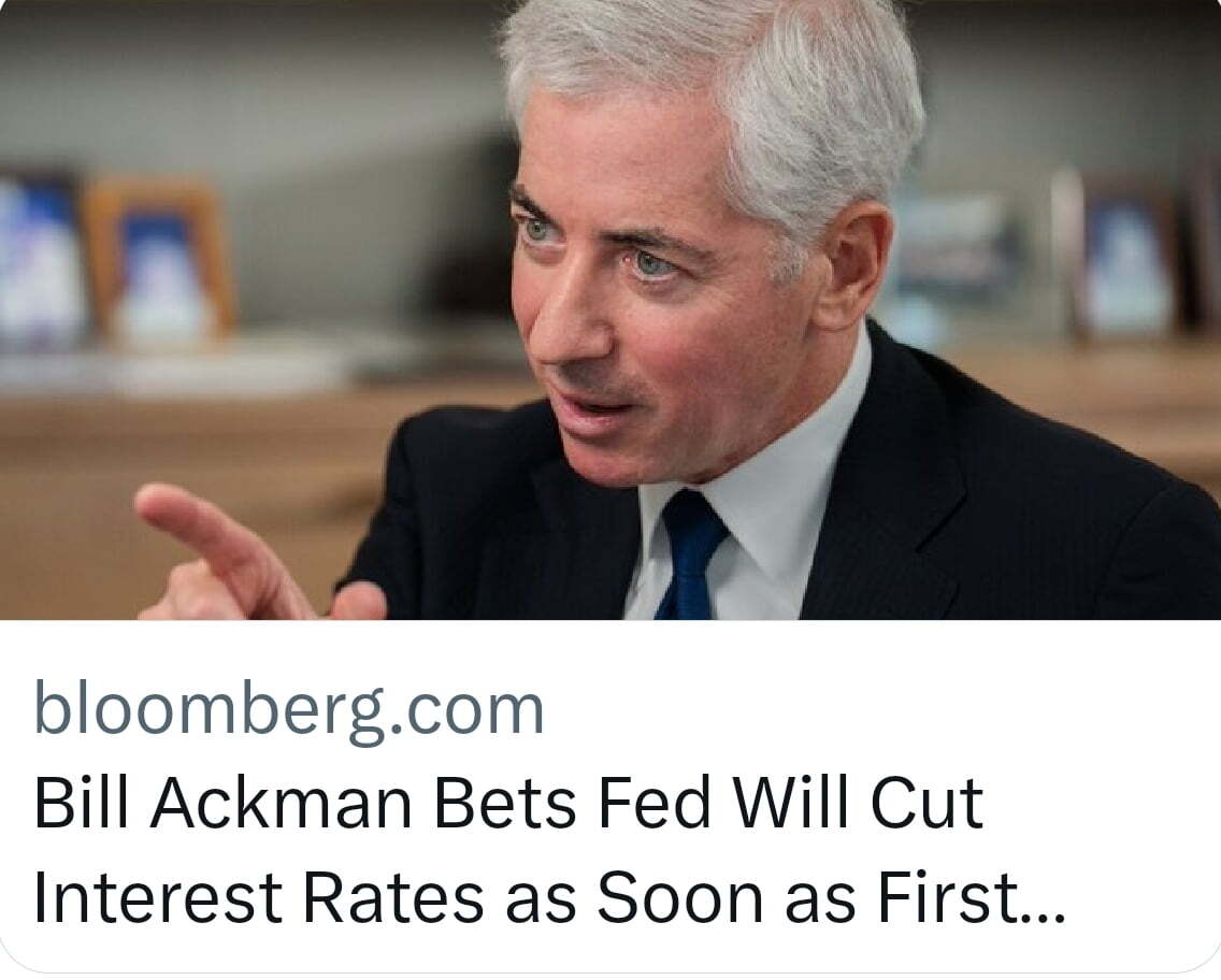 게다가 월가의 유명 투자자인 빌 애크먼은 어젯밤 블룸버그에서 토크쇼를 진행하는 데이비드 루벤스타인 칼라일 설립자와의 인터뷰에서 "Fed가 시장 예상보다 더 빨리 금리 인하를 시작할 것이라고 확신한다"라면서 그렇게 베팅하고 있다고 밝혔습니다. 그러면서 기준금리 인하 시기는 내년 중반이 될 것 같고, 이르면 1분기일 수도 있다고 지적했습니다. 애크먼은 "현재 일어나고 있는 것은 경제에 영향을 주는 실질 금리가 인플레이션 둔화에 따라 계속 높아지고 있는 것"이라면서 "Fed가 곧 금리 인하를 시작하지 않는다면 미국 경제는 실제 경착륙할 위험이 있다"라고 주장했습니다. 그러면서 인플레이션 추세가 3% 미만일 때 Fed가 기준금리를 약 5.5%로 유지한다면 "그것은 매우 높은 실질 금리"라고 설명했습니다. 이는 어제 월러 이사가 금리를 낮춰야 할 이유에 관해 설명했던 것과 같은 내용입니다.