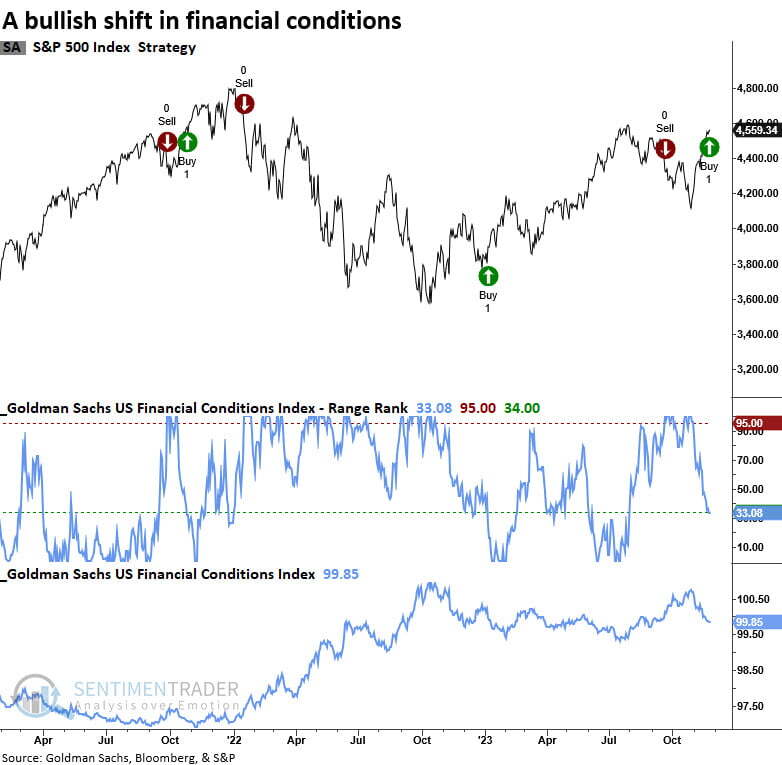골드만삭스의 금융여건 지수는 크게 완화되고 있습니다. 지난 한 주간 9포인트가 낮아져 99.85까지 내려왔습니다. 이는 높아진 주가, 줄어든 회사채(BBB) 스프레드, 달러 약세 등에 따른 것입니다. 그리고 과거 이런 수준으로 금융여건 지수가 떨어지는 건 주식을 사라는 신호이기도 합니다. 골드만삭스의 트레이딩 데스크에서는 과거 성과가 미래 성과를 나타내는 건 아니지만 10% 이상 랠리가 있었을 때 3~4% 후퇴하는 것은 통상적인 일이었다고 밝혔습니다.