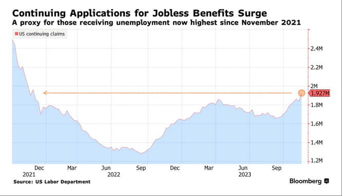 찰스 슈왑의 캐시 존스 채권 전략가는 "신규 실업급여 청구 건수는 약간 올라갔지만, 연속 청구 건수는 굉장히 큰 폭으로 증가했다. 이는 해고된 사람들이 새로운 일자리를 찾기가 매우 힘들어지고 있다는 것을 시사한다"라고 밝혔습니다.