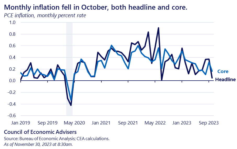 30일(미 동부시간) 아침 발표된 10월 개인소비지출(PCE) 물가는 미국 경제가 연착륙할 것이라고 확인해주는 축포 같았습니다.