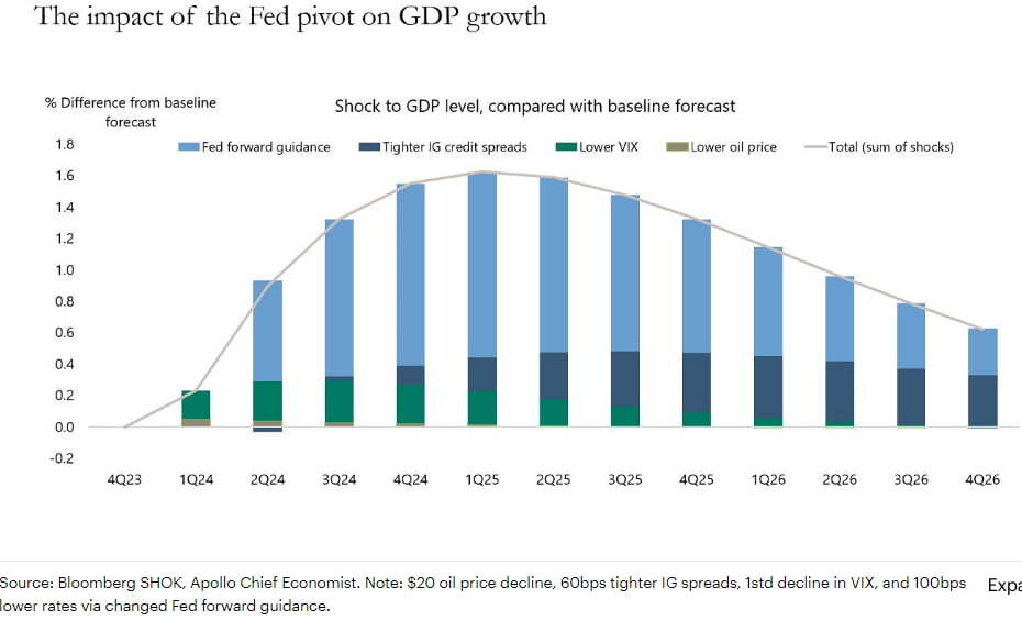 Fed가 비둘기파적으로 전환하는 것이 인플레이션 압력을 높일 것이란 경고도 나왔습니다. 아폴로 매니지먼트의 토스텐 슬록 이코노미스트는 "Fed의 전환은 지난 9월 이후 유가 배럴당 20달러 하락, 회사채 스프레드 60bp 축소, 변동성지수(IX)의 표준편차 1 감소 등과 결합하여 향후 분기 동안 GDP 성장을 1.5% 증가시킬 것이다. 미국의 잠재성장률이 2%이므로 GDP가 1.5% 증가하는 것은 상당한 의미가 있다. 성장이 강해지면 주택, 노동, 항공, 호텔, 레스토랑, 상품에 대한 수요가 늘어나 궁극적으로 인플레이션에 새로운 상승 압력이 가해질 것"이라고 주장했습니다. 그는 "지난주 Fed의 피벗은 인플레이션을 2%로 되돌리려는 목표를 복잡하게 만들고, 2024년 비둘기파적 Fed가 다시 좀 더 매파적으로 되돌아가게 할 것"이라고 지적했습니다. 블랙록도 "인플레이션이 다시 치솟는 걸을 막고 싶다면 중앙은행은 높은 금리를 통해 경제 활동을 계속 제약할 필요가 있다고 생각한다"라고 주장했습니다.