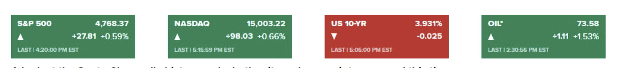 결국, 다우는 0.68%, S&P500 지수는 0.59% 올랐고, 나스닥은 0.66% 상승했습니다. S&P 500지수는 2022년 1월 3일 기록한 사상 최고치인 4796.56에 0.6%(28.19포인트) 내에서 마감했습니다.