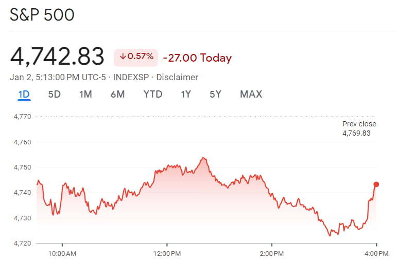 새해 첫 거래일인 2일(미 동부시간) 뉴욕 금융시장에서는 아침부터 금리가 치솟았습니다. 달러도 올랐고 한때 유가도 급등했습니다. 금리, 달러, 유가의 상승은 통상 주식에 부정적 요인입니다. 뉴욕증시의 주요 지수는 아침부터 하락세를 보였습니다.