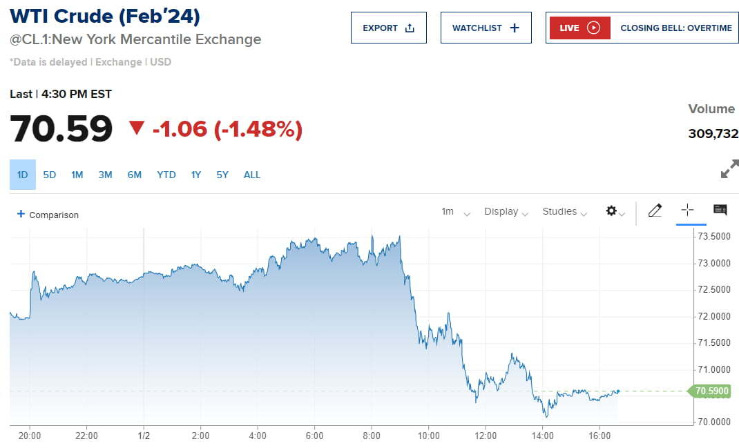 연말 랠리는 인플레이션 둔화가 지속하면서 미 중앙은행(Fed)이 비둘기파적으로 전환할 것이란 믿음에 기인한 것이었습니다. 그런데 유가가 오르면 인플레이션 우려가 다시 커질 수 있습니다. 선박들이 아프리카 대륙을 우회하면서 물류비도 늘어날 수 있습니다. 그렇지 않아도 이번 주 5일, 다음주 11일 유럽과 미국에서 각각 공개되는 12월 소비자물가(CPI)는 헤드라인 수치가 다시 높아질 것으로 예상되고 있습니다.