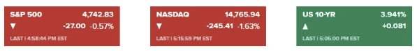 주가는 약세를 이어갔습니다. 찰스 슈왑은 "지난해 10월 5%에 달했던 10년물 수익률이 급락하면서 2개월간의 연말 랠리가 촉발되었지만, 4% 이상으로 다시 오르면 투자 심리가 위축될 수 있다"라고 말했습니다.