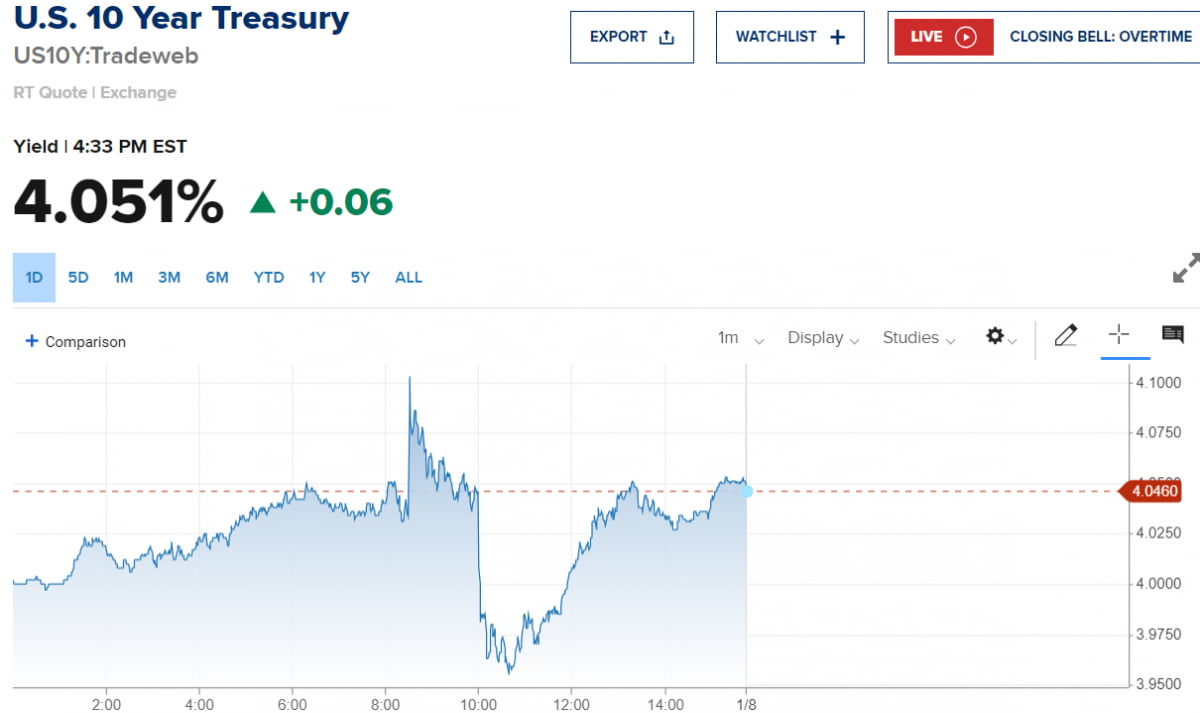 최근 ADP 민간고용, 실업급여 청구 건수 등을 보면 12월 고용은 예상(17만 개)보다 더 높게 나올 가능성이 있었죠. 그래서 투자자들은 불안감 속에 오전 8시 반을 기다렸습니다.