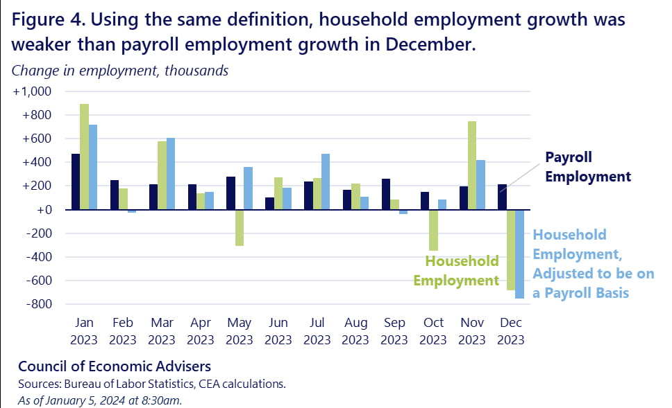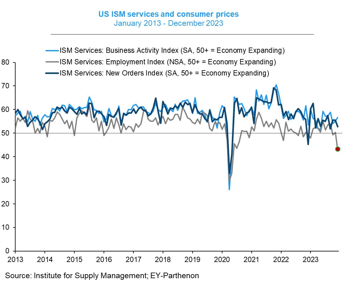 인플레이션 인사이트의 오마르 샤리프 설립자도 "ISM 서비스의 고용 지수가 급감했는데 이는 에러로 보인다. 1997년 7월 이후 다섯 번째로 큰 하락 폭인데, 이런 수준은 2020년 3월과 4월(팬데믹) 등 극단적 사건이 발생했을 때만 있었다. 지역 연방은행들이 발표한 12월 지역 서비스업 조사에서는 고용이 그렇게 급락하지 않았다"라고 지적했습니다.