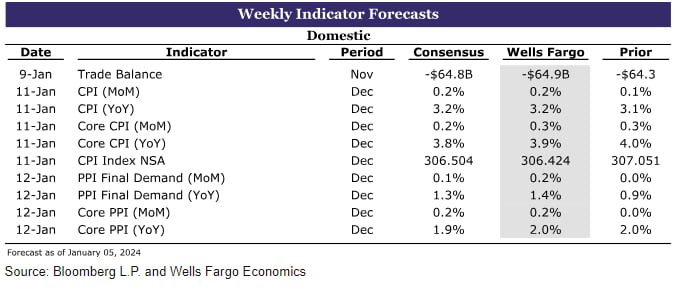목요일에는 재무부가 12월 월간 재정 데이터(Monthly Treasury Statement)를 공개합니다. 미 정부의 2024년 회계연도 첫 분기 결과가 나옵니다. 월가는 2024년 재정 적자가 연간 1조 8500억 달러 수준으로 2023년과 비슷한 GDP의 약 6.5%가 될 것으로 보고 있습니다. 이는 채권 시장에 영향을 줄 수 있습니다.