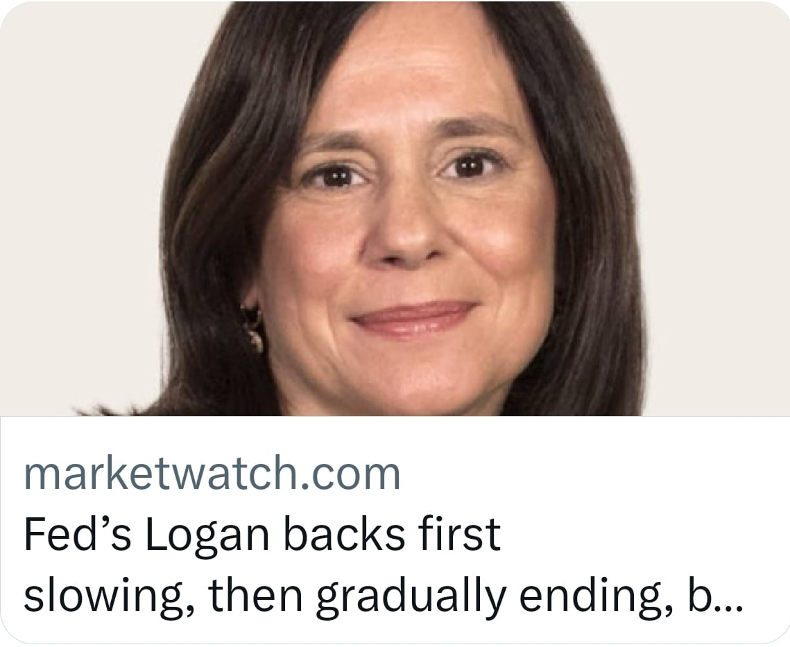 이 발언의 중요성을 이해하려면 로건 총재가 어떤 사람인지부터 알아야 합니다. 로건 총재는 2022년 5월 댈러스 연은 총재가 되기 전까지 뉴욕 연방은행 부총재로 근무하면서 10년간 공개시장조작을 직접 담당하던 사람입니다. 즉 Fed의 양적 완화(QE)와 QT를 실무적으로 담당한 것이죠.