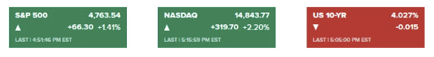 QT 종료에 대한 희망, 유가 급락 속에 뉴욕 채권시장에서 국채 금리는 하락세를 보였습니다. 만하임 지수 발표, 소비자 인플레이션 기대가 발표될 때마다 추가 하락했습니다. 미 국채 10년물 금리는 한때 3.966%까지 떨어졌습니다. 다만 오후장 들어 금리는 상당폭 반등했습니다. 결국, 오후 4시 50분께 1.3bp 내린 4.029%에 거래됐습니다. 2년물은 1.9bp 하락한 4.372%를 기록했습니다.