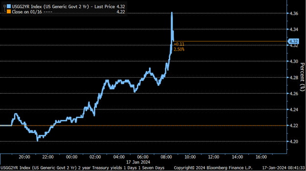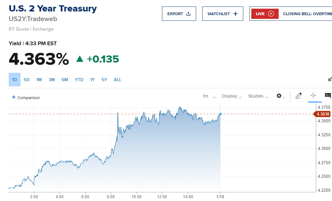 유럽에서 금리가 뛰었고 이는 아침부터 미국 채권시장에 영향을 미쳤습니다.