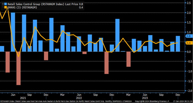 자동차, 휘발유, 건축자재 등을 뺀 통제그룹 소매판매는 전월 대비 0.8%나 상승해 예상 0.2%보다 훨씬 좋았습니다. 이는 변동성이 큰 구성 요소를 제거한 것으로 국내총생산(GDP) 계산에 반영됩니다.