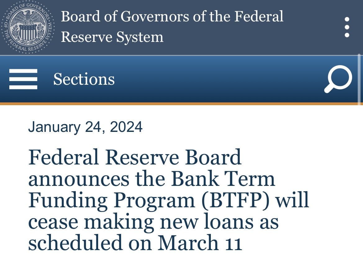 지방은행 주식도 전반적으로 하락했습니다. Fed가 어젯밤 작년 은행 위기 때 만든 은행기간펀딩프로그램(BTFP)를 3월 11일 종료하겠다고 발표한 탓입니다. 또 BTFP로 나가는 대출에 대해선 즉시 은행 지급준비금에 대해 주는 이자보다 낮은 금리를 적용하지 않기로 했습니다. 그동안 일부 은행은 BTFP에서 4.88%로 대출을 받아 5.4%를 주는 지급준비금으로 맡겨 약 0.5%포인트의 이자를 그냥 먹었습니다. 공짜 점심이었죠.