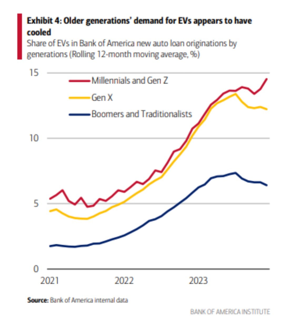 테슬라는 0.34% 올랐습니다. 전날 폭락할 때 캐시 우드는 테슬라 주식 3200만 달러 어치를 저가 매수한 것으로 나타났습니다. 그러나 전기차 수요 전망은 여전히 좋지 않습니다. 뱅크오브아메리카는 보고서에서 "팬데믹 이후 공급망 붕괴로 억눌렸던 수요 때문에 자동차 판매는 당분간 강세를 유지할 것"이라면서도 "전기차의 점유율은 평평해지고 있으며 이에 따라 판매량과 시장점유율 추정치를 하향 조정한다"라고 밝혔습니다. 뱅크오브아메리카는 ▲경제성 부족 및 제한적 선택=미국에서 판매되는 62개 모델 중 4만5000달러 미만 모델은 20개에 불과하다 ▲주행거리 불안=미국은 큰 나라여서 긴 거리를 이동하기를 원한다. 동시에 대형차를 선호한다. 이는 더 큰 배터리, 더 비싼 가격의 문제를 제기한다 ▲규제=인플레이션 감축법(IRA)에 따른 세액 공제 인센티브는 일부 전기차에만 적용된다 등 세 가지를 이유로 들었습니다.