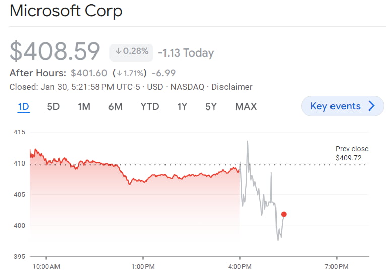 이들의 주가는 시간 외 거래에서 하락하고 있습니다. 바이탈 날리지의 애덤 크리사펄리 설립자는 "마이크로소프트와 알파벳의 경우 실적에서는 불평할 만한 것이 별로 없다. 이는 너무 기대가 높았고 최근 주가가 크게 올랐던 데 대해 일시적 반응 같다"라고 말했습니다.