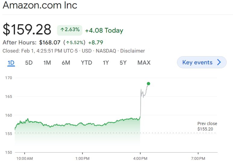 아마존의 4분기 매출은 전년 동기보다 14% 증가했습니다. 캐시카우인 아마존웹서비스(AWS, 클라우드 컴퓨팅 사업) 매출은 13% 늘어난 242억 달러로 예상(242억2000만 달러)과 비슷했습니다. 예상을 훨씬 넘은 건 영업이익이었습니다. 132억1000만 달러로 예상 104억9000만 달러를 대폭 상회했습니다. 영업이익률은 7.8%에 달해 예상 1.8%를 훨씬 넘었고요. 비용 절감 노력이 빛을 발하고 있는 것이죠. 아마존은 1분기 매출이 1380억~1435억 달러로 지난해 같은 기간보다 8~13% 성장할 것이라고 밝혔습니다. 월가 추정 1421억 달러와 비슷합니다.