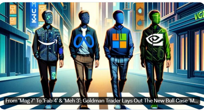 골드만삭스의 트레이딩 데스크에서도 아마존과 마이크로소프트, 메타, 엔비디아는 'Fab 4'(엄청난 4, fabulous 4)라고 지칭하고 애플 테슬라 알파벳은 'Meh 3'(별로 3)로 부르면서 이들이 두 부류로 나뉘고 있다고 지적했습니다.