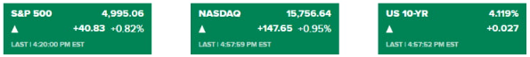 시장 관심은 작년 9월 취임 이후 첫 공개 발언을 하는 아드리아나 쿠글러 이사에게 쏠렸습니다. 쿠글러 이사는 브루킹스 연구소 대담에서 "인플레이션 진전에 만족하고 그것이 계속될 것이라고 낙관한다. 어느 시점에는 인플레이션과 노동 시장의 지속적 냉각으로 인해 기준금리를 낮추는 것이 적절해질 수 있다"라고 말했습니다. 임금 상승률도 둔화할 것이라고 예상했습니다. 전반적으로 비둘기파적이었습니다. 하지만 "디스인플레이션 진행이 정체되면, 현 수준에서 금리를 더 오래 유지하는 것이 적절할 수 있다"라면서 금리를 금세 인하해야 할 긴급성은 거의 없다고도 밝혔습니다. 'Fed의 비공식 대변인'으로 불리는 월스트리트저널(WSJ)의 닉 티미라오스 기자는 "Fed 스피커들의 말을 들으면 위원회가 '현재의 긴축정책을 유지하다가 나중에 인하한다'라는 입장으로 상당히 잘 통일되어 있다는 걸 알 수 있다"라고 언급했습니다. 이들의 발언에 시장은 면역성을 보였습니다. 월가 관계자는 "이번 주 Fed 위원들의 발언은 파월 의장이 지난주 두 번이나 자세히 설명한 내용을 반복하는 수준이어서 별 영향은 없다"라고 설명했습니다. 일부에선 금리 인하가 늦춰지는 것은 악재가 아니라는 분석도 나옵니다. 골드만삭스의 트레이딩 데스크에서는 "시장 상승세는 투자자들이 예상보다 늦은 금리 인하라는 개념에 더 편안해지고 있다는 신호일 수 있다"라고 밝혔습니다. 뉴욕 증시의 주요 지수는 소폭 상승세로 출발한 뒤 지속해서 랠리를 벌였습니다. 결국, 다우는 0.4%, S&P500 지수는 0.82% 올랐고 나스닥은 0.95% 상승했습니다.