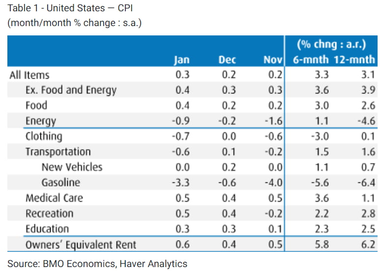 BMO는 "1월의 '매우 나쁜' (super bad) 인플레이션 보고서는 탄력적인 1분기 경제 성장과 함께 Fed의 걱정을 불러일으킬 것이다. 시장의 공격적이고 빠른 금리 인하에 대한 의문을 제기한다. 1월 CPI는 7월 금리 인하 예측에 훨씬 더 부합한다"라고 분석했습니다.