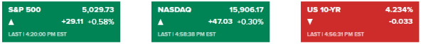 이외에도 중요한 개별 뉴스들이 있었습니다. '오픈AI가 AI를 활용한 검색서비스를 개발 중'이라는 보도(인포메이션)가 나오는 바람에 알파벳이 급락했고요. 애플(-0.16%)과 관련, 더 버지는 '애플 팬들이 비전프로를 반품하고 있다'고 보도하기도 했죠. 그러나 장 막판 블룸버그는 애플이 앱 개발자들을 위한 AI 도구, 즉 마이크로소프트가 깃허브에서 제공하는 코파일럿과 소프트웨어 개발을 거의 끝냈다고 보도하면서 애플은 약보합세로 거래를 마쳤습니다.