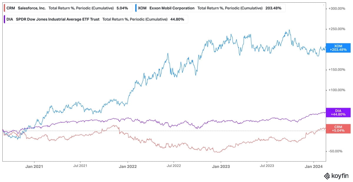 아마존(+0.9%) 주식에도 긴장감이 감돌았습니다. S&P글로벌은 어제 26일부터 다우 지수 구성 종목에 월그린을 대신해 아마존을 편입한다고 발표했죠. 문제는 이렇게 다우에 편입된 종목들의 주가 움직임이 그렇게 긍정적이지 못했다는 것이죠. 대표적인 게 2020년 8월 엑슨모빌을 대신해 들어간 세일스포스입니다. 이후 어제까지 다우 지수는 44.8% 올랐는데 세일스포스 주가는 5.04% 상승하는 데 그쳤습니다. 반면 다우에서 빠진 엑슨모빌은 그새 203.48%나 크게 올랐습니다. 게다가 아마존의 제프 베이저스 설립자는 계속해서 주식을 내다 팔고 있습니다. 베이저스는 이달에만 5000만 주를 팔아 85억 달러를 챙겼고, 내년 1월까지 5000만 주를 추가 매각할 수 있다고 신고했습니다.
